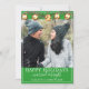 Uma nova e festiva foto de Natal de 1rua feliz casal, cena de inverno com sinos de trenó em um fundo verde de Natal. Adicione sua própria foto de casal.