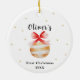 O primeiro desenho de Natal do bebê com um adorno de aquarela fofo e estrela. É simples, mínimo, adorável ornamento de bebês. texto pode ser personalizado.