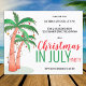 O Natal do orçamento no Convite de festas de julho. Vamos comemora o Natal em julho com uma festa! Convide familiares e amigos para a celebração temática do seu Natal com este divertido convite com palmeiras desenhadas à mão decoradas com luzes. Personalize esses convites com seus detalhes e aproveite a diversão! Desenho original © Michele Davies.
