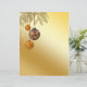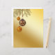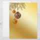 Uma ilustração de Natal nobre e elegante: galhos de árvores de natal ouro com balas de natal penduradas em fundo ouro. Este papel de carta de Natal é perfeito para enviar seus cartões de natal.