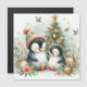Pinguins adoráveis sob a árvore de Natal.