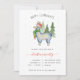 Este lindo convite de festas de Natal apresenta uma lhama de moda, aquática, em um chapéu de Papai Noel e um cachecol verde de inverno, em frente aos pinheiros verdes. O texto engraçado diz, "Feliz Aluguel".