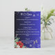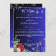 Bonito menu de casamento que é facilmente atualizado com suas próprias opções de menu e apresenta um bonito fundo de gradiente azul com poinsettias e óculos de champanhe no fundo.