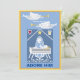 Imagem moderna da natividade natalícia Dois anjos soprando trompetes e as palavras "Venha, vamos adorá-lo" com uma cena estilizada da Natividade
