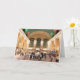 Lindo cartão de Natal com o famoso ponto turístico Grand Central Station em Nova York decorado em vermelho e verde