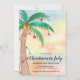 Convide familiares e amigos para o seu Natal na Festa de julho com estes convites divertidos e festivos. Eles apresentam uma palmeira decorada desenhada à mão sobre um fundo de aquarela. Personalize esses convites de festas com seus detalhes. Original Watercolor © Michele Davies.