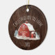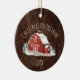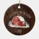Celebre o Natal na fazenda este ano! Este ornamento apresenta uma imagem de fundo de madeira rústica. Por cima do fundo está um celeiro de aquarelas, árvores e neve. As palavras "Natal na Fazenda", arca acima do celeiro, e abaixo da ilustração está espaço para você personalizar o ano. Carregue sua foto na parte traseira do ornamento e adicione texto!
