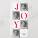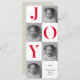 "Espalhe a alegria das festas com este cartão de Natal moderno, "JOY", com tipografia vermelha ousada, combinada com fotos da família a preto e branco. O layout limpo da colagem e a mensagem personalizada fazem dele um na moda, ainda que sincero, para compartilhar seu amor nesta estação. Perfeito para famílias, casais e qualquer um que queira um cartão festivo de férias com uma reviravolta moderna."