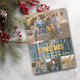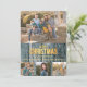 Este cartão de Natal plano com modelo fotográfico coloca as suas fotografias no palco central, com a fotografia de cima a ser maior, e as três fotos de baixo a serem quadradas. As fotografias são emolduradas com uma estrutura rústica do painel de madeira de falso cinza. No centro está um texto em ouro estilizado que diz "MERRY CHRISTMAS & FELIZ ANO NOVO". Sua assinatura personalizada está abaixo do texto de saudação. A parte traseira da placa é uma cinza sólida correspondente. *Crédito da fotografia: Fotografia © Storytree Studios, Stanford, CA.