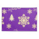Uma design de decoração colorida de Natal, com flocos de neve, árvores de Natal e espirais espalhados por um fundo roxo festivo.