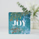 Cruzando ondas azuis profundas no fundo com coníferas e bagas de Natal moldando a palavra "JOY". Um belo Natal temia design litorâneo ideal para o Natal no Verão ou para as celebrações do Natal litorâneo.