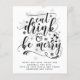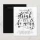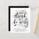 Cartão atraente moderno de Natal ou outros feriados com tipografia que diz 'Coma Beba e Alegre-se'. Campos de modelo de texto em ambos os lados garantem que você possa escrever sua carta anual de atualização para amigos e familiares. Envelopes não incluídos.