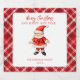 Tipografia vermelha sobre fundo branco com uma aquarela Santa Clause e um padrão de tartã vermelho.