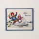 Quebra-cabeça com duas crianças brincando na neve no início dos anos 1900.