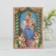 lindíssima pintura a aquarela vintage com madonna e criança. a madonna está sentada sobre um trono ouro colorido vestindo um vestido longo, azul e vermelho, cachecol branco com estrelas douradas, coroa branca, coroa sobre sua cabeça, halo dourado, e segura o bebê jesus em seus braços, que tem um ouro radiando halo em volta da sua cabeça. dois anjos crianças estão sentados em frente e um deles a outra é tocar um trompete pequeno, e ambos estão vestindo vestidos brancos com aparas de ouro, aos pés da madonna e ao redor dos anjos são rosas rosa no chão, e duas colunas clássicas com flora verde entrelaçando ao redor deles e arredores de madonna e criança. a pintura da vintagem cristã em pinks e blues.