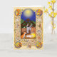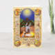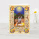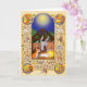 Torne especial o Natal de alguém com este doce cartão medieval com uma cena de natividade com boi, burro e Jesus bebê, cercado pelos quatro evangelistas, animais medievais (um unicórnio, um violino tocando gato e bagpipe tocando macaco, um javali selvagem, camelo, cabra, faisões e um rato tocando um órgão) e flores mille fleurs. E quem é aquele próximo ao manger? É, evidentemente, um córrego.