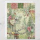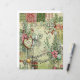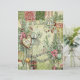 This design features a rich, rustic patchwork border in classic holiday colors—deep reds, forest greens, and creams—with patterns like damask, plaid, and vintage scenic prints. The center frame is a soft, textured green, creating the perfect space for a photo or custom text.