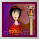 Uma jovem desfrutando de uma bela noite de Verão (natsu no) (yoru) por luz de lanterna.