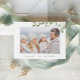 Mande cartões de natal para amigos e família em estilo chic com nossos cartões com fotos elegantes. Graciosos erros de cor d'água pintada enquadram sua foto, com sua saudação personalizada (mostrada com "Amor e Alegria") e o(s) nome(s) da família centrados no fundo.