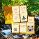 Folhas e folheto de negócios dobrados na natureza com cor de laranja e ouro. Adicione um logotipo à primeira página, com cinco painéis para personalizar em ambos os lados o papel de 8,5 x 11 polegadas que será dobrado em três após a compra. O sol através das folhas é a imagem de fundo, com um lugar para uma foto de negócios, logotipo e código QR. O texto é verde sobre uma cor laranja muito clara. Lado um contém texto para a frente e trás do panfleto. Lado dois é toda a dentro de texto.
