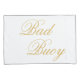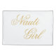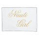 Nauti Girl Bad Buoy Seu Dourado Caso de Travesseiro Náutico de Script apresenta o texto divertido "Nauti Girl" e "Bad Buoy" em um elegante roteiro dourado em um fundo branco. Uma fantástica e divertida adição náutica ao quarto. Elaborado por ©Evco Studio www.zazzle.com/store/evcostudio