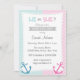 Gênero Revelar convite para Chá de fraldas com tema náutico e fundo azul e rosa pastel.