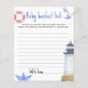 Este é um tema náutico Ahoy, é um menino! Chá de fraldas. Elementos náuticos aquosos - veleiro (barco de papel), farol, âncora, nós náuticos na boia. Itens correspondentes disponíveis.