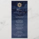 Este moderno cartão de janto de náutica de hélio é perfeito para um casamento de praia ou cruzeiro. O simples design apresenta uma roda de barco dourada sobre um fundo de marinho azul-d'água.