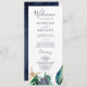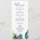 Este programa moderno de casamento náutico verde é perfeito para um casamento de cruzeiro ou praia. A design botânica apresenta lindas folhas verdes com sotaques de marinho e estrelas-do-mar douradas, dando-lhe uma vibração da praia. Inclua o nome da noiva e do noivo, a data e o local do casamento, a mensagem do obrigado, a ordem do serviço, a festa noiva e um memorial "em memória amorosa" opcional.