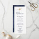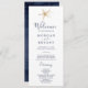 Este moderno programa náutico de náutica de náutica é perfeito para um casamento de cruzeiro ou praia. O simples design apresenta estrelas douradas. Inclua o nome da noiva e do noivo, a data e o local do casamento, a mensagem do obrigado, a ordem do serviço, a festa noiva e um memorial "em memória amorosa" opcional.