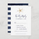 Este moderno pedido de música náutica para estrelas náuticas - o cartão RSVP é perfeito para um casamento de cruzeiro ou praia. O simples design apresenta estrelas douradas. Crie sua lista de convidados de casamento e sua lista de músicas de dança de uma só vez! Este cartão de resposta do casamento convenientemente pergunta aos hóspedes se eles poderão ir ao seu casamento, e também que música os fará dançar.