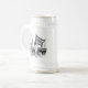 Caneca de cerveja com desenho de dois marinheiros alemães do famoso navio de guerra alemão Bismarck da segunda guerra mundial com o nome do navio escrito com letras fraktur.