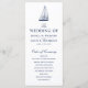Adicione seus detalhes para criar um cartão de programa de casamento único e clássico, mas moderno, em estilo náutico. Este design apresenta uma ilustração náutica vintage em veleiro seguida dos seus detalhes abaixo dele. No verso há uma série de faixas marinhos e brancas para completar a aparência. Todos os elementos deste item são ajustáveis utilizando a função de personalização. Aproveite criar e fazer-o seu.