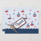 Cores náuticas em vermelho, branco clássicos, e azul com âncora e caranguejos e um obrigado que da novidade você etiqueta com a guita.