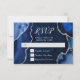 Complete your event stationery with this elegant RSVP card featuring a navy blue agate marble design accented with luxurious silver details. The bold geode-inspired background creates a dramatic and sophisticated look, perfect for weddings, birthdays, formal celebrations, or glamorous evening events. Designed with clear response sections, this RSVP card allows guests to easily confirm attendance, indicate number attending, and respond with acceptance or regrets. The clean, modern typography keeps details easy to read while complementing the rich agate texture. Easily personalize all text to suit your event and coordinate beautifully with matching stationery.