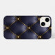 Navy Blue Quilted Leather & Gold Studs Phone Case