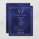 A navy blue, uneven colored background decorated with a hand drawn wreath. White colored frames and text. Personalize and your monogram initials, names and details.