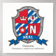 Estilo do Cavaleiro escudo monograma letra N nome de arte poster perfeito para um quarto de meninos ou sala de jogos em tons de vermelho, azul branco e cinza. Personalize com o nome e o nome do próprio filho, significando um toque personalizado no quarto ou no berçário do seu filho, este exemplo é para o nome Neal Champion. Persuasivo, criativo e amado. Poster impressão ideal para um presente para um bebê novo, para batizar, nomear um bebê ou um presente de chá de fraldas. Desenho de escudo único, arte gráfica, investigação de nomes, redação e design por Sarah Trett para www.mylittleeden.com