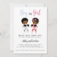 Prepare-se para uma revelação de gênero! Este convite único e divertido apresenta dois adoráveis bebês afro-americanos vestidos para um jogo de boxe — um a rosa, o outro a azul. Todo o texto é totalmente editável, para que você possa personalizá-lo com os detalhes do evento. Uma escolha divertida e na moda para os pais que querem algo ousado e memorável para o seu dia especial.