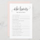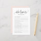Quem conhece melhor a noiva? Adicione este jogo divertido ao seu chá de panela. Ele apresenta uma escrita branca preta, tipografia clássica, fundo rosa-claro. Você pode personalizar a parte traseira deste cartão de jogo de chá de panela. Perfeito para qualquer tema e estação do chá de panela.