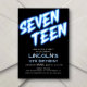 Dê um grande brilho ao seu partido com este convite de aniversário de 17 anos para meninos. A tipografia ousada e o excitante efeito neon dão a esta design uma vibração masculina e divertida. Perfeito para o seu aniversário ou festas de festas de festas. Solicite seus convites impressos e suprimentos de festas ou faça o download de seus convites digitais agora por um dia que eles nunca esquecerão!