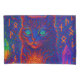 Este design apresenta um gatinho trippy colorido escuro com pistas e cristais brilhantes.