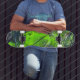 Welcome to the wild side of street art—where neon jungle greens crash into moody navy shadows in a chaotic, electrified dance. This skateboard deck pulses with primal energy, like nature on adrenaline. Each splatter and slash is a battle cry for skaters who blur the lines between art and motion. Go bold, go wild, go full-throttle expression.