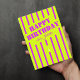 Um cartão de boas-vindas de aniversário verde neon minimalista e espantoso adornado com listras néon e uma vela. Este cartão pode ser personalizado com o nome do celebrante de aniversário.