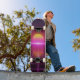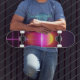 A estética dos anos 80 encontra o skate moderno. Este design de pôr do sol em grid neon e horizonte traz um toque de vaporwave legal para o seu passeio ou para a sua casa. Perfeito para pessoas que amam o visual retro-futurista. Então, quer você esteja procurando andar pelas ruas ou apenas queira uma bela peça de arte para a parede, este deck de retrowave com cores roxas, laranja e rosa impressionantes é perfeito para você.