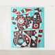 Arte geométrica abstrato em azul, preto, vermelho e branco por R. Trickett.