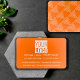 Cartão de visita em fundo de cor sólida néon cor laranja e um logótipo de cobrir simples. Personalize a frente agora. O verso é coberto por um design de padrão geométrico... moderno e design de tendências por Alma Wad... e vem 100 em um pacote. Tamanho padrão de cartão de visita australiano/japonês.