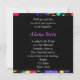 Neon Paint Splatter, Convite Para Bat Mitzvah. Cores néon brilhantes e engraçadas em preto criam um design divertido. Personalize com seu texto e fonte. CORRESPONDENTE A NAPKINS DE PAPEL, CARTÕES DE MESA, ETIQUETAS DE GARRAFA DE ÁGUA, CARIMBOS DE POSTAGEM, CARTÕES DE LOCAL E CARTÕES DE AGRADECIMENTO TAMBÉM DISPONÍVEIS NESTE DESIGN