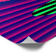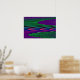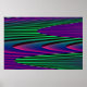 Este poster apresenta uma imagem digitalmente criada que se assemelha a uma série de ondas suaves que ripam contra uma costa calma. As ondas são néon vívidas, de tons verdes, cor-de-rosa e azuis, e têm uma qualidade 3D.
