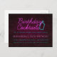 Neon assina "cocktails de aniversário" com silhueta de garrafa. Fundo do tijolo; cor rosa e turquesa. Personalize com seus detalhes; adicione mais fotos e/ou texto ao verso; a cor do backer é editável.